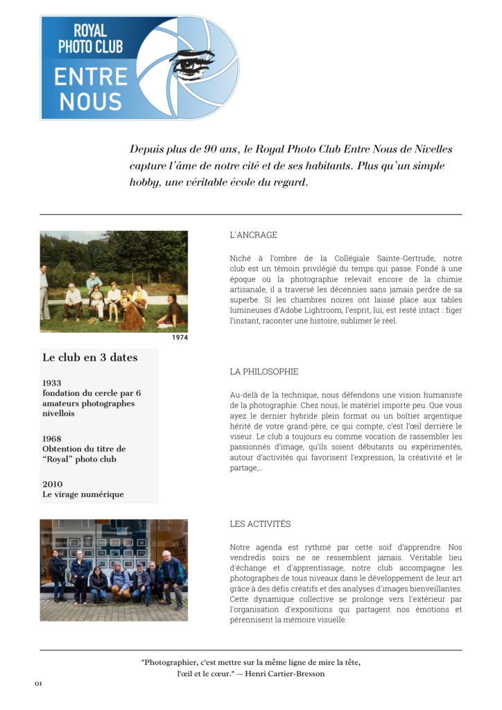 BIENVENUE SUR LE SITE DU ROYAL PHOTO CLUB ENTRE NOUS DE NIVELLES N’hésitez pas à vous promener sur les différentes pages du site pour découvrir les activités et les projets…